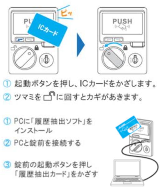 ●最大5000件の開閉記録が抽出可能。PCに「履歴抽出ソフト(無料)」のインストールが必要です。